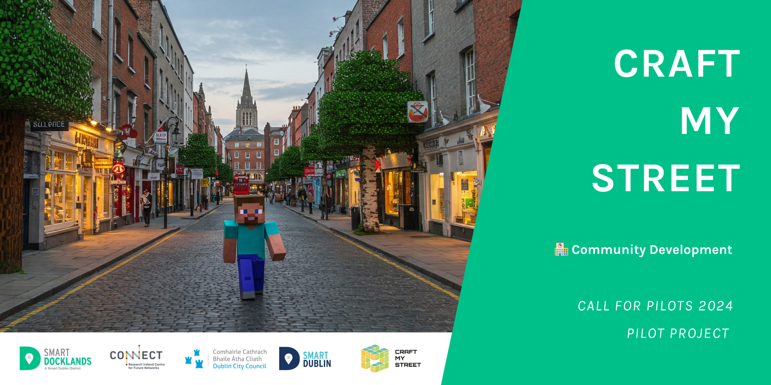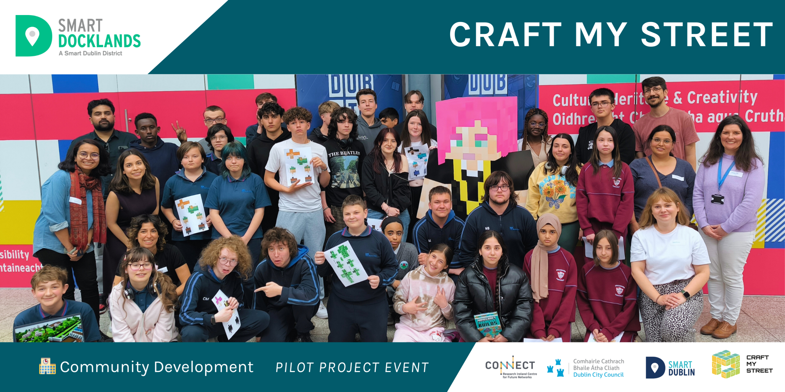 Young people are often excluded from decisions about the cities they live in. Craft My Street set out to change that by using Minecraft as a participatory tool to involve children and teenagers in shaping their communities. The project was led by the team from University College Dublin as part of the Smart Docklands Pilot Call 2024. Through in-class workshops and a dedicated online Minecraft server, students reimagined their neighbourhoods in a virtual Dublin – proposing playful, practical ideas for better public spaces.